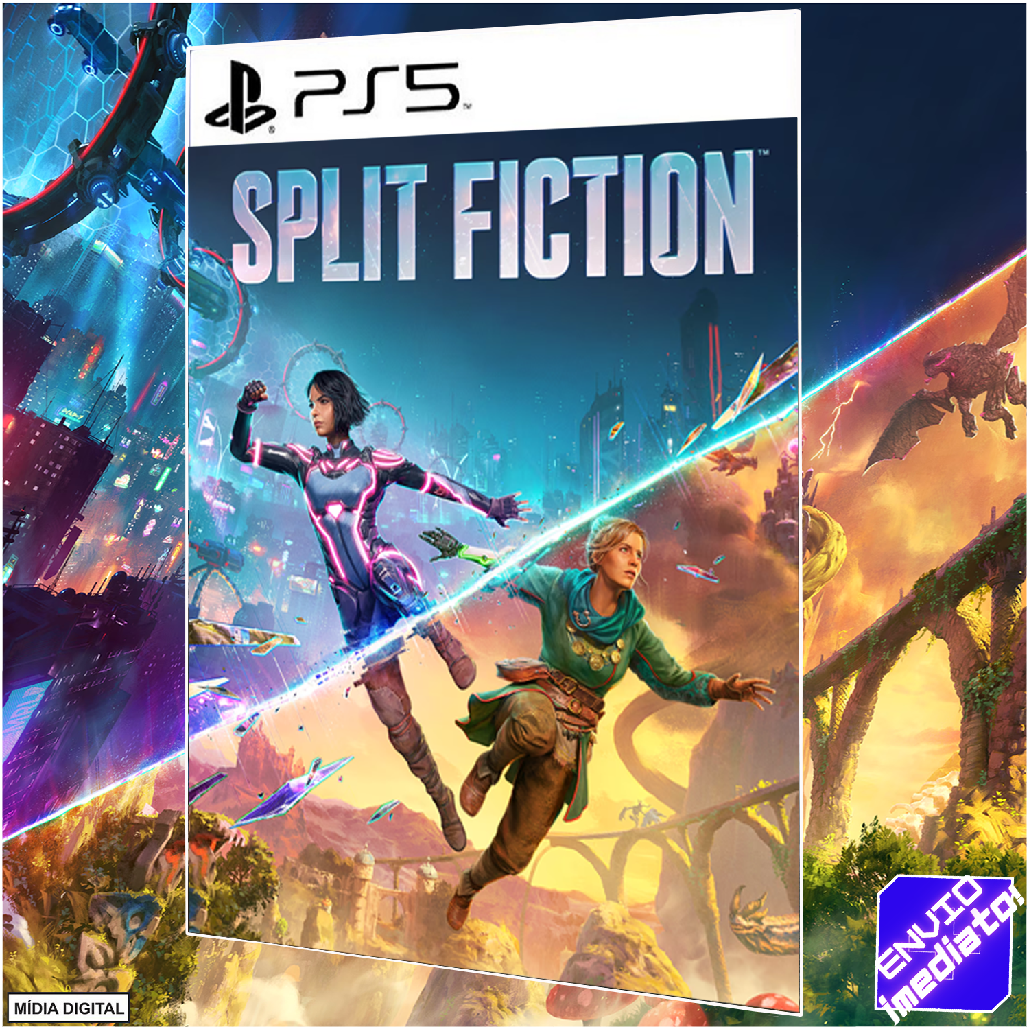 Passe por momentos alucinantes ao vivenciar os vários mundos de Split Fiction, uma aventura cooperativa que ultrapassa fronteiras, do mesmo estúdio que criou It Takes Two. Mio e Zoe são escritoras opostas que ficam presas em suas próprias histórias depois de serem ligadas a uma máquina projetada para roubar suas ideias. Elas terão que depender uma da outra para se libertarem, trabalhando juntas para dominar várias habilidades e superar os mais diversos desafios enquanto transitam entre mundos de ficção científica e fantasia nesta história inesperada sobre amizade.